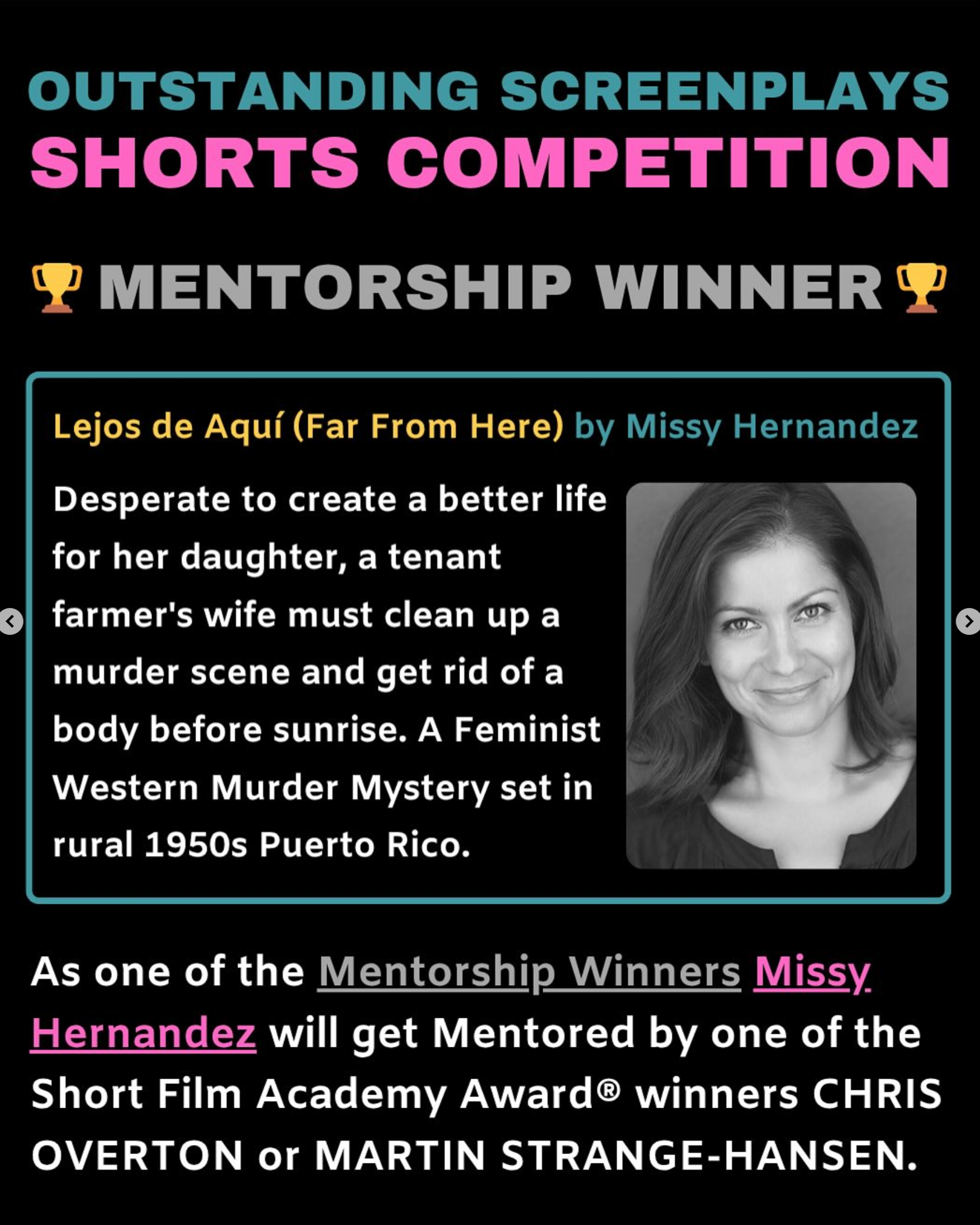 Lejos de Aquí was one of 15 finalists for Shore Scripts Short Film Fund! Click the image above to read more about the finalists and their projects